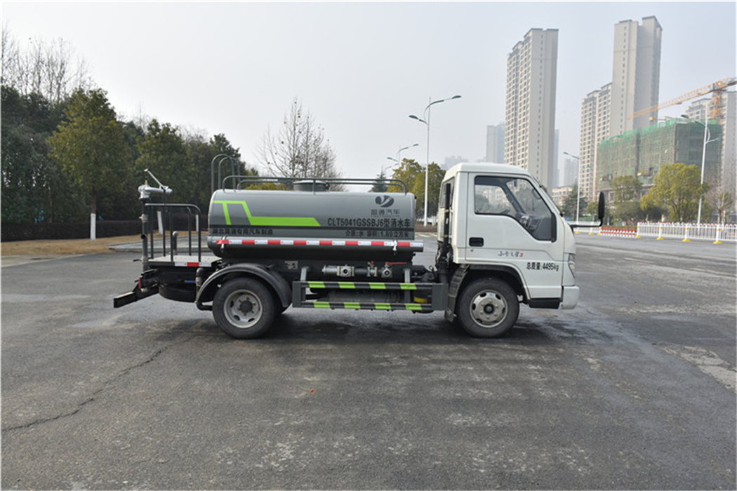 國六福田小卡3噸藍牌灑水車上裝配置:罐體容積為3立方灑水車,***工藝罐體,厚度為4mm碳鋼Q235材質,罐內隔板具有防波作用,以減輕汽車行駛時罐體液體沖擊,罐體及整車外形尺寸按照公告。帶大功率***灑水泵,泵可自吸自排,整車前沖、后灑、側噴、高位花灑、帶65消防接口
