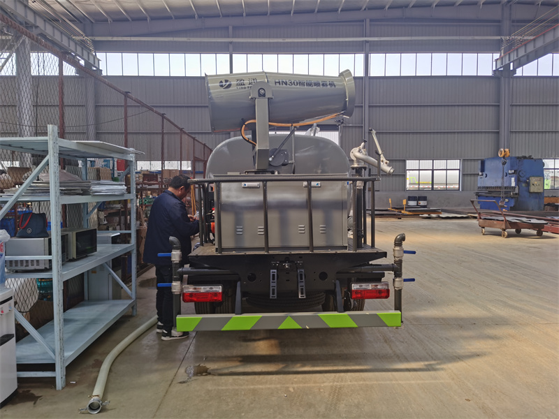 性能簡介:吸程≧7米,灑水寬度≧14-16米,射程≧25-40米,引水時間<5min,流量60m3/h。前沖(噴)、后灑、帶側噴(花灑)、帶后工作平臺、平臺上安裝綠化灑水高炮(炮噴射形狀可調節:直沖、大雨、中雨、毛毛雨、霧狀、可連續調節,360°旋轉),配消防接口,自流閥,濾網,帶自吸自排功能。安裝30-80米霧炮,霧炮可以遙控操作,可以手動操作,按霧炮大小配多大功率發電機