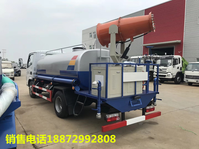 隨底盤選裝駕駛室;品名:,密度:1000千克/立方米,有效容積4.09立方米,罐體尺寸(××)(mm):3400×1600×1100;ABS吸程7米,灑水寬度14-16米,射程25-30米,引水時間<5min,流量60m3/h。前沖()、后灑、帶側噴(花灑)、帶后工作平臺、平臺上安裝綠化灑水高炮(炮噴射形狀可調節:直沖、大雨、中雨、毛毛雨、霧狀、可連續調節,360°旋轉),配消防接口,自流閥,濾網,帶自吸自排功能配備大功率專用灑水泵,泵可自吸自排,安裝過濾網,帶消防接口,可通過消防栓進水,帶自流閥,隨車選裝20米綠化卷盤,可噴灑農藥,罐體金屬漆。罐體有橢圓和方圓罐兩種,可根據用戶的要求定做  發動機可選,云內,朝柴 ,錫柴,全柴