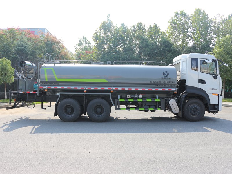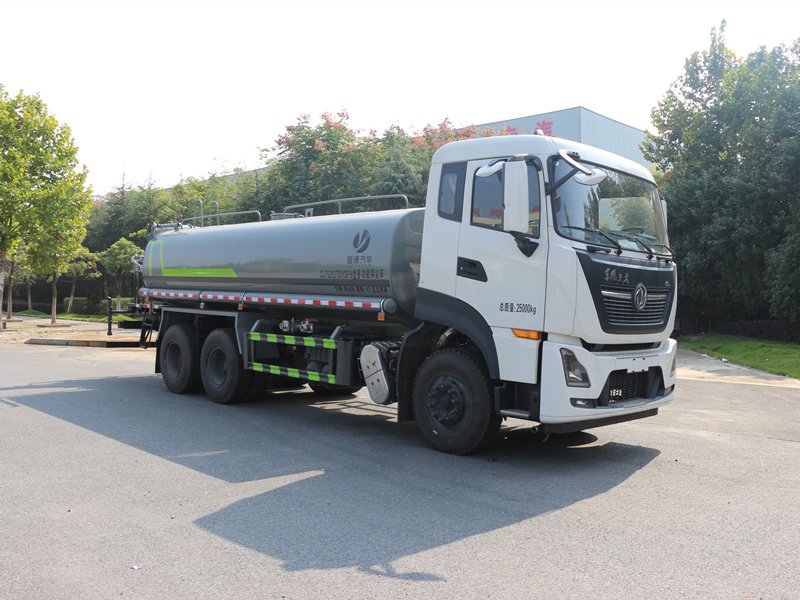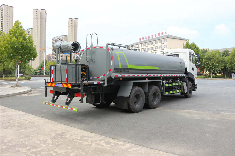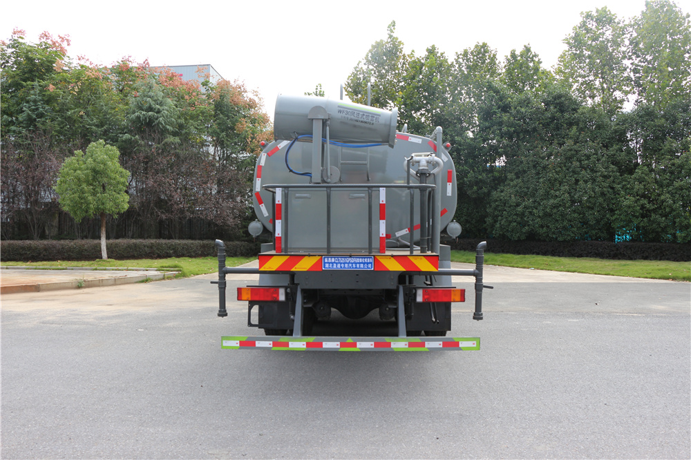 專用功能配置:罐體容積約為23立方米,公告有效參數18.6立方米、采用武鋼優質碳鋼板卷壓成型。配備專用灑水泵,自吸自排,前噴后灑、側噴、后工作平臺及灑水高壓炮。灑水泵自吸高度為6米左右,整車灑水寬度14米左右,后工作平臺水炮上下左右360度旋轉可調成:直沖狀、大雨、中雨、小雨、霧狀,有效射程≥28米,整車帶接頭、水位計,自流閥。后工作平臺主管路帶1寸澆花接口,附送2根3米水管,1個爬梯,兩側及后保險杠。