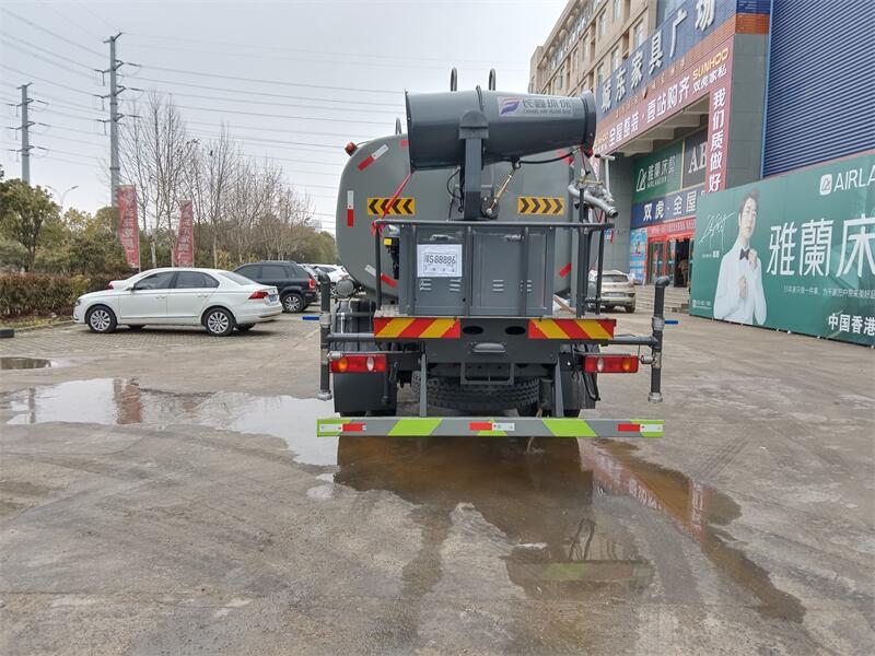 12方灑水車上裝配置: 1、罐體約為 12 方, 2、邊燈帶電,罐體尾部上方標配 2 個紅色示寬燈, 3、標配前噴為鴨嘴直沖,標配后沖,用戶可根據自己的需求,來調 整對沖位置。