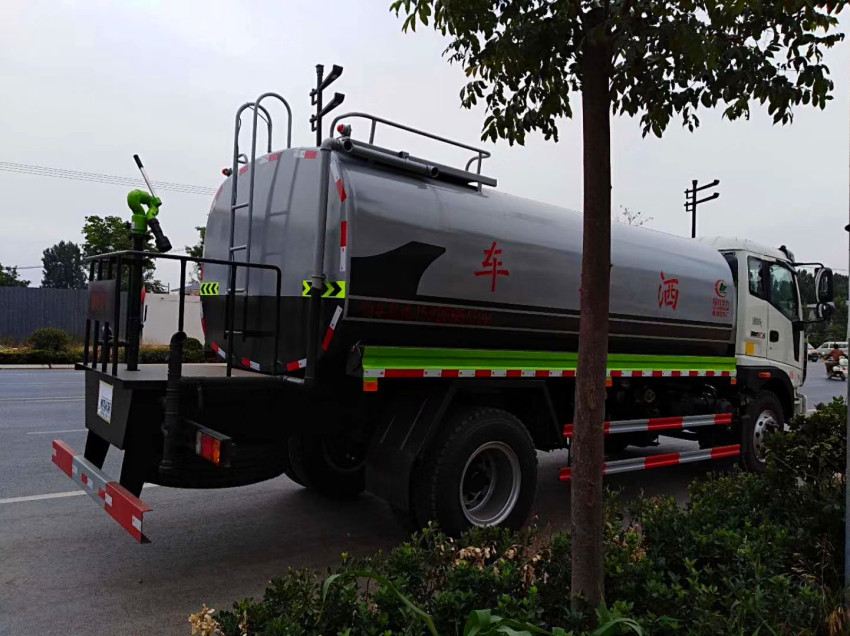 福田灑水車隨底盤選裝駕駛室;側噴為選裝件;品名:水;密度:1000千克/立方米;有效容積:12立方米;軸距3950mm時,罐體外形尺寸(長×長軸×短軸)(mm):4600×2180×1390,外形尺寸長(mm)/前懸(mm)對應關系:7700/1250,7900/1450;軸距4500mm時,罐體外形尺寸(長×長軸×短軸)(mm):5200×2080×1290;外形尺寸長(mm)/前懸(mm)對應關系8250/1250,8450/1450;ABS型號為3631010-C2000,生產廠家為東科克諾爾商用車制動系統(十堰)有限公司;側面防護裝置材料材質:Q235,連接方式:焊接;后下部防護裝置材料材質:Q235,連接方式:焊接,斷面尺寸(寬×高):30×120(mm),離地高度:500mm. 吸程7米,灑水寬度14-16米,射程25-30米,引水時間<5min,流量60m3/h。前沖()、后灑、帶側噴(花灑)、帶后工作平臺、平臺上安裝綠化灑水高炮(炮噴射形狀可調節:直沖、大雨、中雨、毛毛雨、霧狀、可連續調節,360°旋轉),配消防接口,自流閥,濾網,帶自吸自排功能配備大功率專用灑水泵,泵可自吸自排,安裝過濾網,帶消防接口,可通過消防栓進水,帶自流閥,隨車選裝20米綠化卷盤,可噴灑農藥,罐體金屬漆。罐體有橢圓和方圓罐兩種,可根據用戶的要求定做,了解灑水車價格,福田12噸灑水車報價,可以聯系程力灑水車生產廠家,陶經理