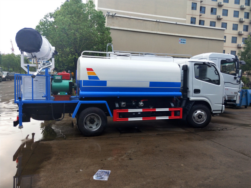 吸程≧7米,灑水寬度≧14-16米,射程≧25-30米,引水時間<5min,流量60m3/h。前沖(噴)、后灑、帶側噴(花灑)、帶后工作平臺、平臺上安裝綠化灑水車高炮(炮噴射形狀可調節:直沖、大雨、中雨、毛毛雨、霧狀、可連續調節,360°旋轉),配消防接口,自流閥,濾網,帶自吸自排功能。 加裝30-40米霧炮,霧炮可以手動操作,可遙控操作,配7千瓦發電機,此車為國五車型,上戶免購置稅