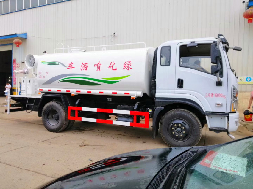 吸程≧7米,灑水寬度≧14-16米,射程≧25-30米,引水時間<5min,流量60m3/h。前沖(噴)、后灑、帶側噴(花灑)、帶后工作平臺、平臺上安裝綠化灑水高炮(炮噴射形狀可調節:直沖、大雨、中雨、毛毛雨、霧狀、可連續調節,360°旋轉),配消防接口,自流閥,濾網,帶自吸自排功能。配備大功率專用灑水泵,泵可自吸自排,安裝過濾網,帶消防接口,可通過消防栓進水,帶自流閥,隨車選裝20米綠化卷盤,可噴灑農藥,罐體金屬漆。罐體有橢圓和方圓罐兩種,可根據用戶的要求定做