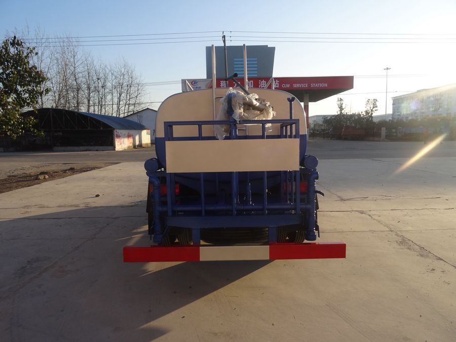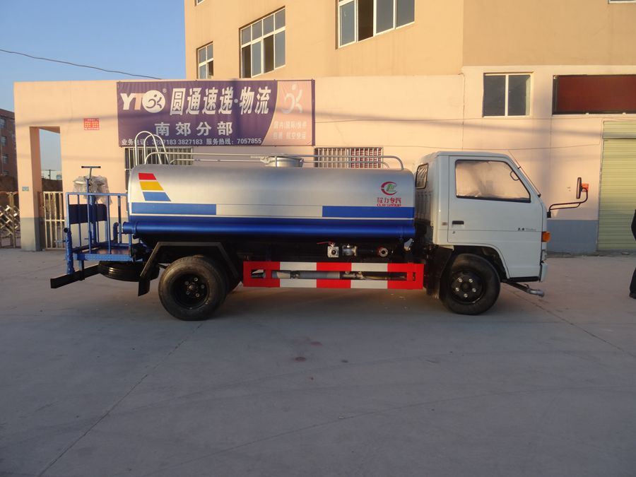 改裝配置:罐體采用4mm厚武鋼專用容積板制作,實際容積5立方,罐內(nèi)隔板具有防波作用,以減低汽車行駛時罐體液體的沖擊。泵 進泵出,消防栓接口,前沖、后灑、側(cè)噴、后工作平臺帶綠化水炮,垂直吸程≧7米,灑水寬度≧14-16米,射程≧20-25米,引水時 間<5min,流量90m3/h。自流閥、濾網(wǎng)、帶自吸自排功能。兩根等長輸水管,金屬漆,其余標(biāo)配。可加裝藥盤、氣動控制閥、噴藥設(shè)備、非車帶泵動力等。