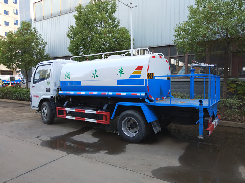 環保5噸小區、學校綠化專用灑水車-東風銳鈴灑水車具有強勁的運水、噴灑、壓塵等功能。灑水車外形美觀、灑水效果好、動力強,是環衛部門、小區物業、工廠廠區、工程企業理想的灑水車,灑水車產品均通過ISO9001-2000國際質量體系認證,是湖北省知名品牌,消費者最信賴的產品之一。 東風銳鈴綠化灑水車,罐體均采用先進的焊接技術,灑水車罐體成型后高壓氣體測試罐體試漏檢驗,是灑水車罐體具有更高的強度、重心穩、車輛運載更安全,成型后罐體采用噴丸預處理工藝,實現除銹,外形美觀經久耐用的作用。 東風銳鈴綠化灑水車底盤配置:采用東風公司原裝底盤,白色單排駕駛室可前翻,東風5檔變速箱,軸距3300mm,氣剎,7.00鋼絲胎,原裝方向助力,正宗國五、國六環保東風輕型102馬力發動機。罐體容積為4-5立方,裝有鴨嘴或者三彎前沖,圓形或者鴨嘴后灑,可帶蓮蓬花灑澆灌花草,后部代用一個工作平臺,上面裝有灑水高炮,可調節霧狀、大雨狀、小雨狀、毛毛雨狀,高射高炮可以360度旋轉用于緊急消防和城鄉綠化使用,為城市環境起到清潔、壓塵、澆灌的作用。 東風銳鈴綠化灑水車是由發動機帶動變速箱,變速箱上安裝的取力器帶動灑水泵產生動力,將罐體內部的液體通過網管系統噴灑出去。其自吸的高度小于7米,灑水寬度12-14米,最大射程28米,霧狀射程大雨5米。 灑水泵采用的是全國口碑最好的大功率專用灑水泵,隨車帶兩根吸水管,帶消防接口,帶自流閥、水位計,音樂喇叭,車輛可自吸水、自排水。 東風銳鈴綠化灑水車出廠帶有整車合格證、底盤合格證、機動車上戶發票、隨車工具、東風灑水車質量走保手冊、全國服務站名冊,相關的灑水車資料及手續齊全