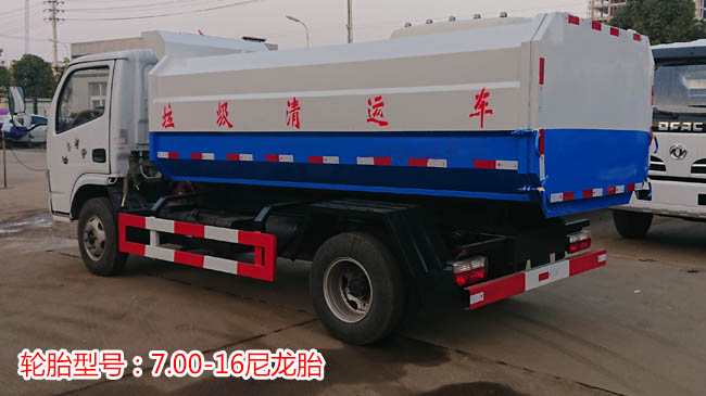 東風小多利卡側裝壓縮式垃圾車:單排可翻轉駕駛室側裝壓縮掛桶對接式垃圾車,3300軸距,東風輕型發動機廠生產的D28D11-4DA發動機(仿五十鈴技術)銘牌功率75(kw),193變截面車架,2噸前橋,4噸后橋,7.00R16鋼絲胎,12伏電池,無空調,有動力轉向,液壓制動。