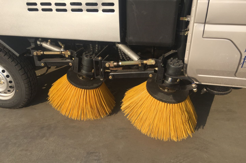 7、左右立掃為雙掃盤(pán),前掃盤(pán)帶自動(dòng)避讓功能,減少了掃刷的數(shù)量和掃刷消耗量,能降低使用成本。掃刷上加裝噴水裝置,用于噴霧降塵