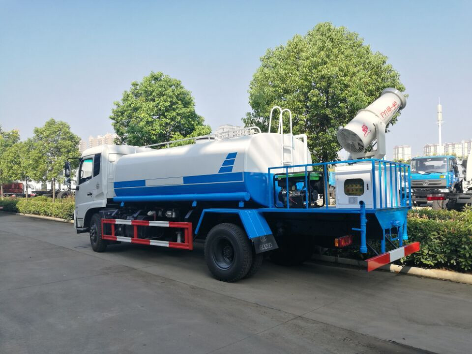 上裝配置:罐體容積7立方米,采用國標4mm優質碳鋼板材制作(可選不銹鋼材質)自吸式灑水泵罐體內設波浪板,大功率車載水泵,具備自吸自排功能;氣動噴灑控制;配前沖、后灑、側噴、消防接口、自流閥、高位花灑、水炮及后工作平臺,水炮可全方位旋轉,最大射程30米,可連續調成直沖狀、大雨、小雨及霧狀;垂直吸程≧7米,灑水寬度≧14-16米,其他廠家標配。