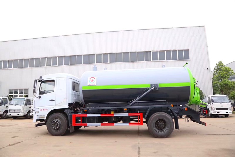 吸污車專用部分由取力器、傳動軸、真空吸污泵、壓力罐體、液壓部分,管網(wǎng)系統(tǒng)、真空壓力表、視糞窗、洗手裝置等組成,隨車配置大功率真空吸污泵和優(yōu)質(zhì)液壓系統(tǒng),罐體封頭一次壓鑄成型、罐體可后開、雙頂自卸。罐內(nèi)污物可通過后蓋直接傾倒,具有真空度高(比吸糞車的吸力更大)、噸位大、效率高、用途更廣泛的特點。