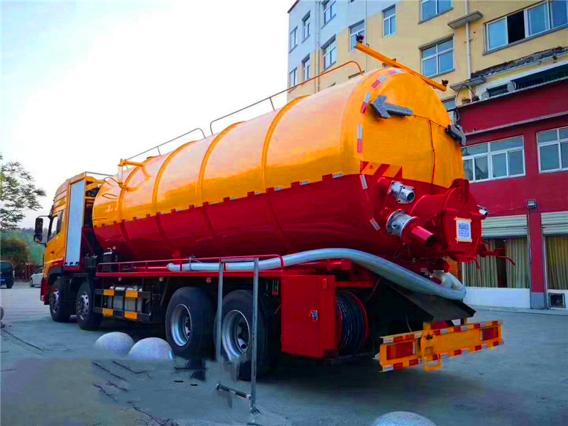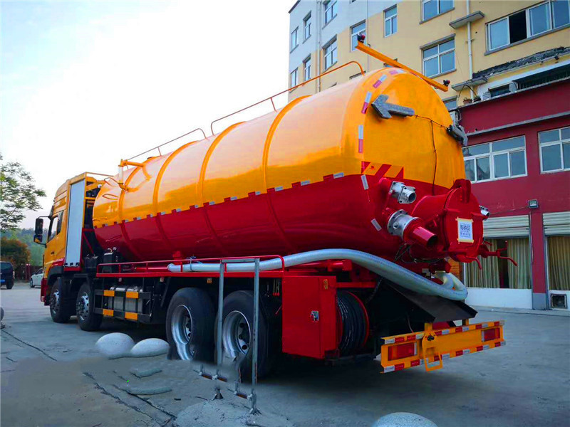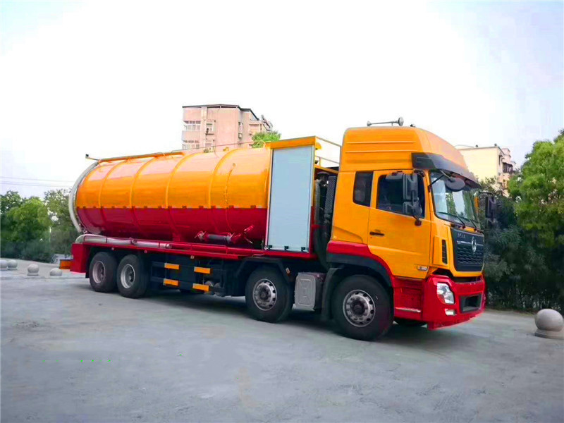 東風天龍后八輪高壓清洗吸污車:采用國產優質碳鋼板制作,罐體采用一次成型而成,鋼板厚度8mm厚,封頭8mm厚,采用通潔或者品浮高壓清洗泵,大功率國產水循環吸污泵,加裝液壓卷盤,配60-100米高壓管,配10個多功能耐磨沖頭,尾部帶一個自流口,帶視糞窗,洗手裝置,吸污罐帶液壓頂起裝置,可以選擇吸污罐后蓋液壓打開或者不打開,配8米吸污管一根。東風天龍清洗吸污車底盤配置:東風天龍豪華駕駛室,康明斯發動機270馬力,帶增壓,9檔變速箱,5噸前橋,10噸雙后橋,方向助力,斷汽剎,1100鋼絲胎(含一條備胎),原裝空調