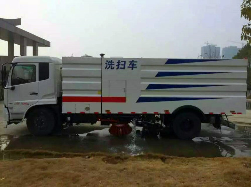 洗掃車具有路面清洗、路面清掃 路緣和路緣石立面洗刷、低壓沖洗、噴霧除塵等多功能。有“全洗掃”、 “左洗掃”、 “右洗掃”、 “全掃”、 多種作業模式可選擇。選擇“全洗掃”模式清洗廣場和路面,清洗效率高效果好,洗凈率達95%以上。選擇“左洗掃”或“右洗掃”模式清洗路面和路緣 。需要進行路面清掃或路面保潔作業時,可選擇掃路模式。需要噴霧除塵時,可開啟噴霧裝置,進行噴霧除塵作業。可以像灑水車一樣對路面進行低壓沖洗作業。