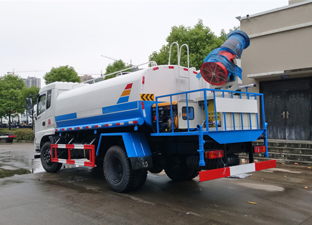 抑塵車吸程≧7米,灑水寬度≧14-16米,射程≧25-40米,引水時間<5min,流量60m3/h。前沖(噴)、后灑、帶側噴(花灑)、帶后工作平臺、平臺上安裝綠化灑水高炮(炮噴射形狀可調節:直沖、大雨、中雨、毛毛雨、霧狀、可連續調節,360°旋轉),配消防接口,自流閥,濾網,帶自吸自排功能。配備大功率專用灑水泵,泵可自吸自排,安裝過濾網,帶消防接口,可通過消防栓進水,帶自流閥,此車尾部加裝大功率農藥噴灑炮,噴灑狀態霧狀,有效射程15-45米,外部平臺帶獨立的機組。