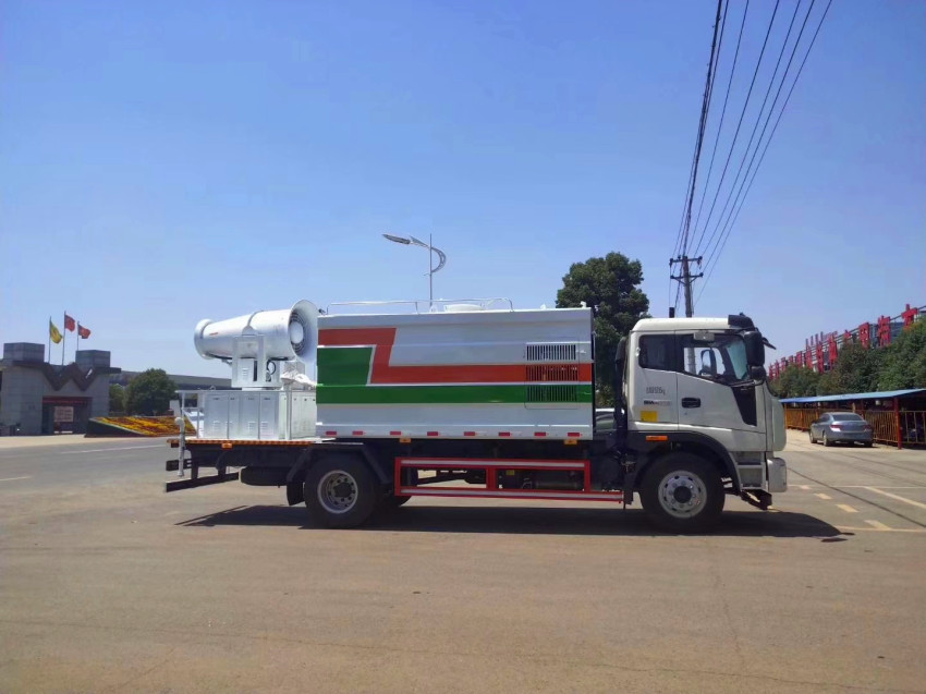 抑塵車吸程≧7米,灑水寬度≧14-16米,射程≧25-40米,引水時間<5min,流量60m3/h。前沖(噴)、后灑、帶側噴(花灑)、帶后工作平臺、平臺上安裝綠化灑水高炮(炮噴射形狀可調節:直沖、大雨、中雨、毛毛雨、霧狀、可連續調節,360°旋轉),配消防接口,自流閥,濾網,帶自吸自排功能。配備大功率專用灑水泵,泵可自吸自排,安裝過濾網,帶消防接口,可通過消防栓進水,帶自流閥,此車尾部加裝大功率農藥噴灑炮,噴灑狀態霧狀,有效射程15-45米,外部平臺帶獨立的機組。