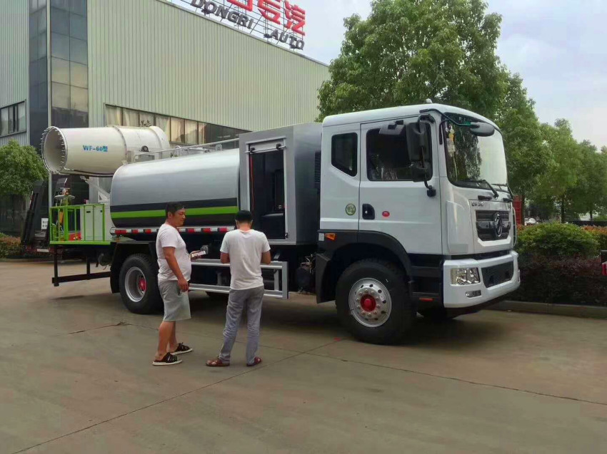 上裝配置:罐體容積為 15-18 立方多功能抑塵灑水車,選配風(fēng)送式霧炮機組射程50米、60米、80米、100米、120米,罐體鋼板為4mm碳鋼Q235材質(zhì),罐內(nèi)隔板具有防波作用,以減輕汽車行駛時罐體液體沖擊,罐體及整車外形尺寸按照公告。帶大功率專用灑水泵,泵可自吸自排,整車前沖、后灑、側(cè)噴、帶65消防接口,后平臺配CLW-50、CLW-60、CLW-80、CLW-100、CLW-120型風(fēng)送式霧炮機組;罐體前封頭配大功率柴油發(fā)電機組;遠程遙控系統(tǒng)控制;霧炮機自動旋轉(zhuǎn)角度0-360°。后平臺帶綠化灑水炮,灑水炮可全方位旋轉(zhuǎn),可連續(xù)調(diào)成直沖狀、大雨、小雨、毛毛雨;前封頭帶水位計,后平臺主管路帶1寸澆花接口,后爬梯。帶兩根輸水管及陰陽端。罐體顏色:銀/灰/綠,罐體兩側(cè)噴“多功能抑塵車”字樣,貼反光標(biāo)示。