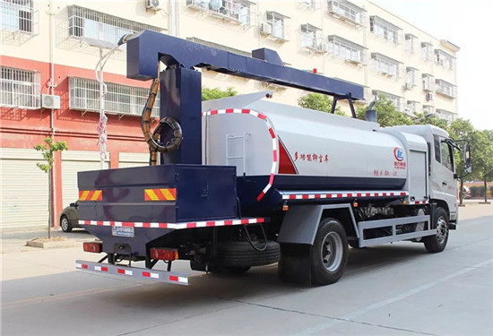 罐體為10立方圓形罐,罐體內(nèi)部做防腐,前沖、后灑、側(cè)噴、高炮,抑塵噴灑桿(帶旋轉(zhuǎn)伸縮功能)。噴灑桿離地3.5-4.5米 ,后部平臺(tái)帶8KW副發(fā)電機(jī)組,罐體內(nèi)部加兩個(gè)1.5KW電動(dòng)馬達(dá)(帶攪拌功能)罐體噴漆上白下藍(lán),平臺(tái)和噴灑桿藍(lán)色。遙控操作噴灑桿上下左右旋轉(zhuǎn),平臺(tái)較上一臺(tái)車(chē)左右加寬20CM,電控箱安裝在后部平臺(tái)。