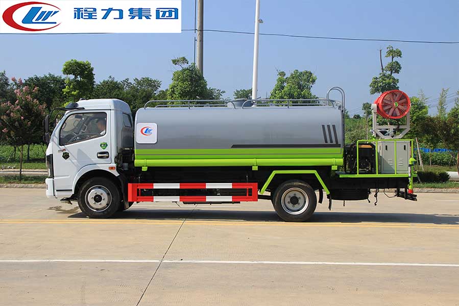 9方東風(fēng)多功能抑塵車配置價格30米霧炮車圓罐灑水車廠家圖片,采用東風(fēng)福瑞卡底盤,3800mm軸距,國六新款駕駛室,云內(nèi)國六150馬力,萬里揚(yáng)6檔變速箱,2.2T前橋,4.5T后橋,7.50R16的鋼絲胎,帶原廠空調(diào)、電動窗、中控鎖、ABS,24V雙電瓶,新法規(guī)底盤。圓罐容積可做到9方多,罐體采用優(yōu)質(zhì)碳鋼制作。前沖,后灑,側(cè)噴,右側(cè)花灑,罐體后帶工作平臺,平臺上安裝綠化灑水炮,灑水炮可全方位旋轉(zhuǎn),可連續(xù)調(diào)成直沖狀、大雨、小雨、毛毛雨,帶安全護(hù)欄,配備大功率專用灑水泵,泵可自吸自排,安裝過濾網(wǎng),帶消防栓接口,可通過消防栓進(jìn)水,帶自流口。