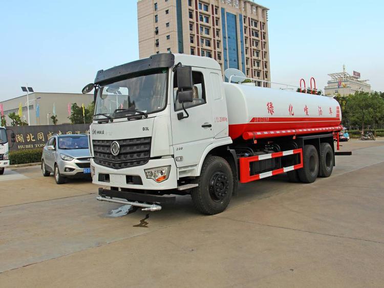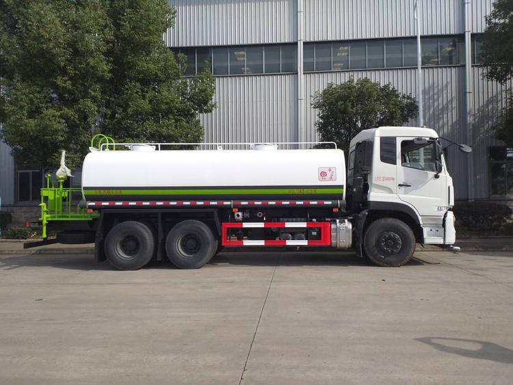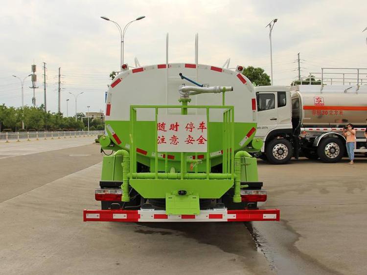 具有前沖、后灑、側(cè)噴(更換噴頭后變?yōu)閭?cè)花灑)、后置式工作平臺(帶踏梯,四周有安全護欄)、平臺上設置有高壓水炮(可360°旋轉(zhuǎn),可調(diào)成柱狀,射程28米;也可調(diào)成霧狀,射程14米,可連續(xù)調(diào)成:直沖狀、大雨 、中雨、小雨、毛毛雨),整車灑水寬度大于14米。配備大功率灑水泵,取力器,雜物過濾網(wǎng),通用65型消防接口(可通過消防栓加水)、1套自流球閥系統(tǒng)(可自吸自排,垂直吸程6.5米),2根引水鋼絲膠管(帶陰陽快速接頭),配鎖,水位計,作業(yè)高音喇叭。兩側(cè)及后加強型保險杠,防滑爬梯,膠管儲存筒。