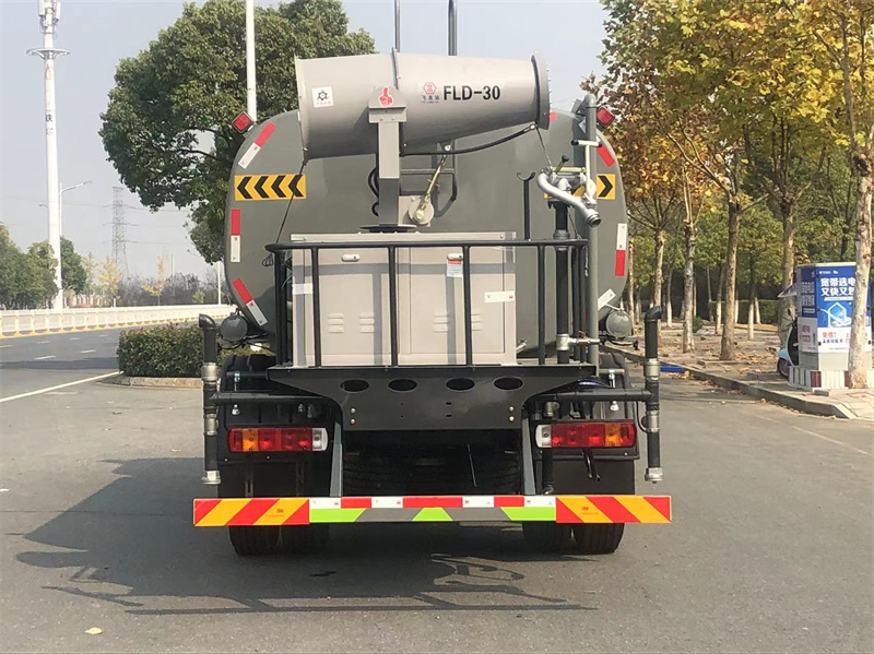 福田12方霧炮灑水車底盤配置: 發動機玉柴 200 馬力(四缸),法士特 8 檔變速箱,加強型 8T 后橋,10.00 鋼絲胎,軸距 3950,原廠空調,原廠取力器,電動玻璃, 中控鎖,斷氣剎2.上裝配置: 1、罐體約為 12 方,可加裝 30-40 型霧炮 2、邊燈帶電,罐體尾部上方標配 2 個紅色示寬燈, 3、標配前噴為鴨嘴直沖,標配后沖,用戶可根據自己的需求,來調 整對沖位置。 4、花紋防滑平臺,炮筒后蓋為定制型螺栓卡扣, 5、前噴、后沖、后灑、側噴,綠化高炮開關球閥均采用 50 大通經 不銹鋼球閥, 6、新式軸承式水炮,更加耐用, 7、60-90 型水泵, 8、防腐法蘭墊片, 9、鋁制后灑,不易炸開 10、罐體自動焊(美國林肯焊機及電源),拼板自動焊接,封頭環 縫焊接,無氣孔,焊縫美觀。 11、側護網、后保險杠、均為螺栓連接,方便拆卸,維修方便。 12、塑料擋泥板,替代鐵擋泥板,更加輕便,用螺栓連接,方便拆 卸。 13、前部、后部主管連接處為 6 孔圓法蘭,不易沖墊