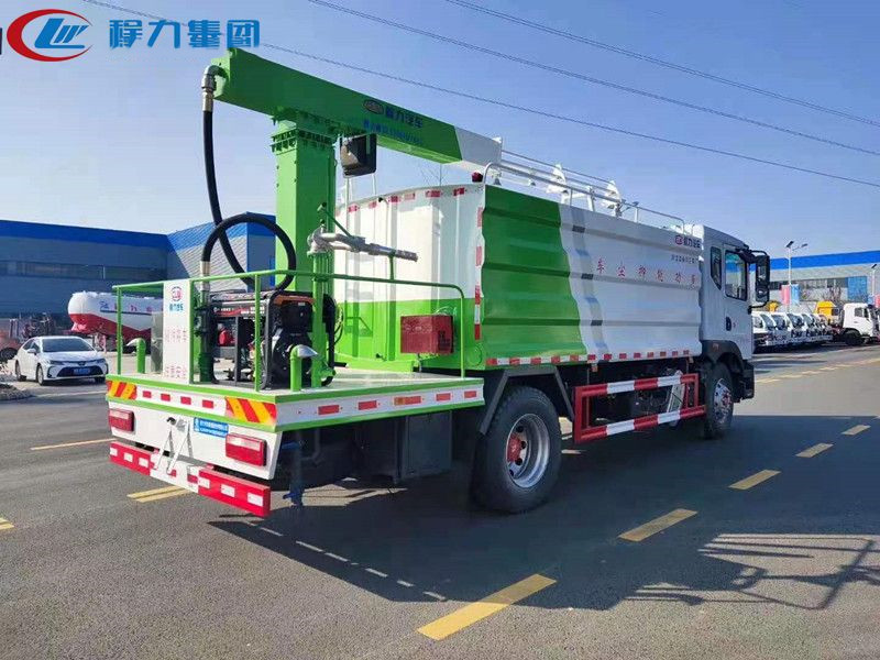 上裝配置:罐體采用瓦楞方箱制作,材質(zhì)Q235,邊4底5,容積:12-15方,標(biāo)配大功率50/110水泵,萬達(dá)液壓回轉(zhuǎn)機(jī)構(gòu),帶自動回流,整車氣動控制,駕駛室操作,箱頂2個1.5千瓦電機(jī),科普8千瓦發(fā)電機(jī)組,3個攝像頭(流量表,噴灑桿,整車尾部),駕駛室12寸彩色視頻可回放,液壓控制裝置,并配有液壓防沉淀攪拌裝置,電子流量計(jì),渦流噴射帶噴頭,也可選裝螺旋式不銹鋼噴頭,氣動控制噴頭(一組控制4個噴頭),噴灑高度4.3米-5.2米,勾檔停車可感應(yīng)3米,自動停噴,8個噴嘴,葉片式絞龍機(jī)構(gòu),可選裝灑水車功能(前部沖洗路面噴灑裝置,兩側(cè)面噴灑裝置,帶后部工作平臺、平臺上安裝綠化灑水炮(炮噴射形狀可調(diào)),可調(diào)直沖狀、大雨、中雨、毛毛雨,可連續(xù)調(diào)節(jié),射程可達(dá)28米,垂直吸程≤7米),帶消防接口、自流閥,可自吸自排。)、加裝氣控回流裝置