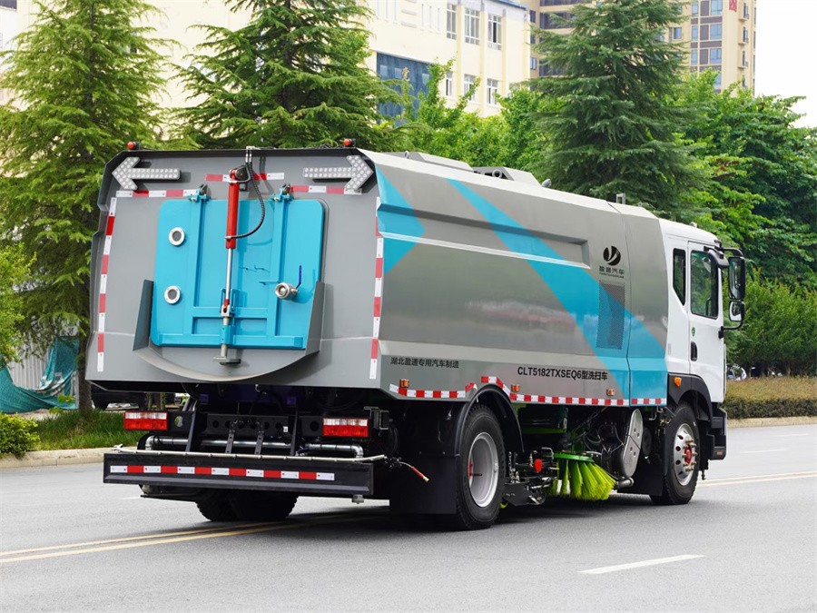 上裝配置方面,有中置4掃盤、后置吸盤、三洋馬達、江鈴五十鈴副發動機、施耐德控制開關、海普瑞思電磁閥組、無極變速自動離合器、免離心式風機、不銹鋼垃圾箱、北極星電子水泵、垃圾箱舉升自卸、尾部LED箭頭燈、手動泵應急等。