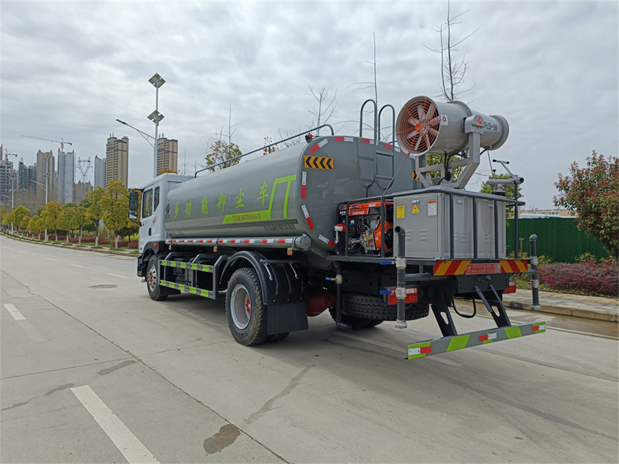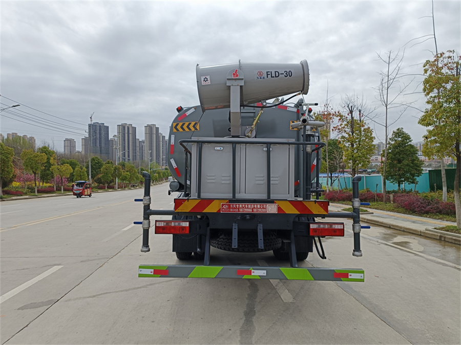 灑水車產品簡述:縱昂牌 CLT5181TDYEQ6 型多功能抑塵車標配前噴(鴨嘴)、后對沖、 后灑、側噴、后置式工作平臺,平臺上配置綠化水炮(可 360°旋轉,既可以調 成柱狀,也可以調成霧狀),配備優質大功率專用灑水泵(可自吸自排,可從河 里或池塘抽水到罐體),取力器,雜物過濾網,消防接口,自流球閥系統、取力 器、球閥、濾網均為國家標準產品,主管道加粗,法蘭墊、法蘭盤加厚,大通徑 球閥。整體具備性能優良安全可靠、效率高、流量大、維修方便等特點