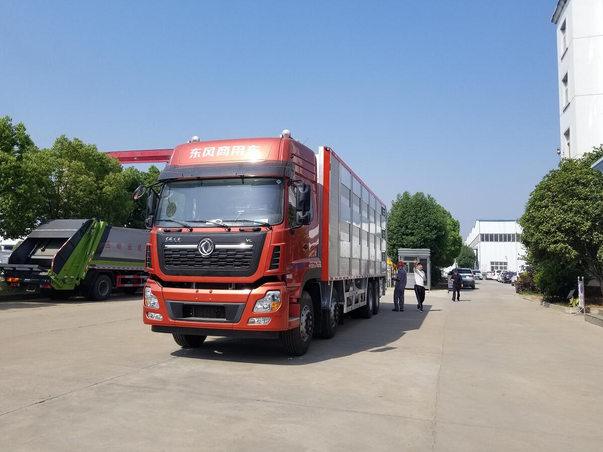 東風天龍前四后八全鋁合金運輸車,又稱鋁合金禽畜運輸車,可做三層或四層,品質(zhì)更佳,車身結構采用鋁合金打造,不銹鋼噴頭和飲水頭,相比鋼制車體,重量減輕20%-30%,可以裝載更多的畜禽,空車行駛節(jié)約燃料,低維保費用,不生銹,生命周期無線延長,無需漆面保護,清潔簡單便捷,操作簡易,車廂升降平臺由全液壓控制,遙控操作更加簡便,自動恒溫系統(tǒng),車廂設計合理方便控制家禽上下車,遙控升降車,動物福利,更大的 內(nèi)部空間,家禽在車廂內(nèi)更感舒適,溫度控制系統(tǒng),沖淋飲水系統(tǒng),遙控側面通風系統(tǒng),可開合側窗系統(tǒng),強制通風系統(tǒng)。