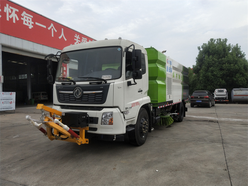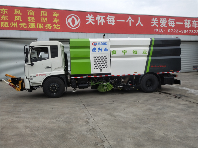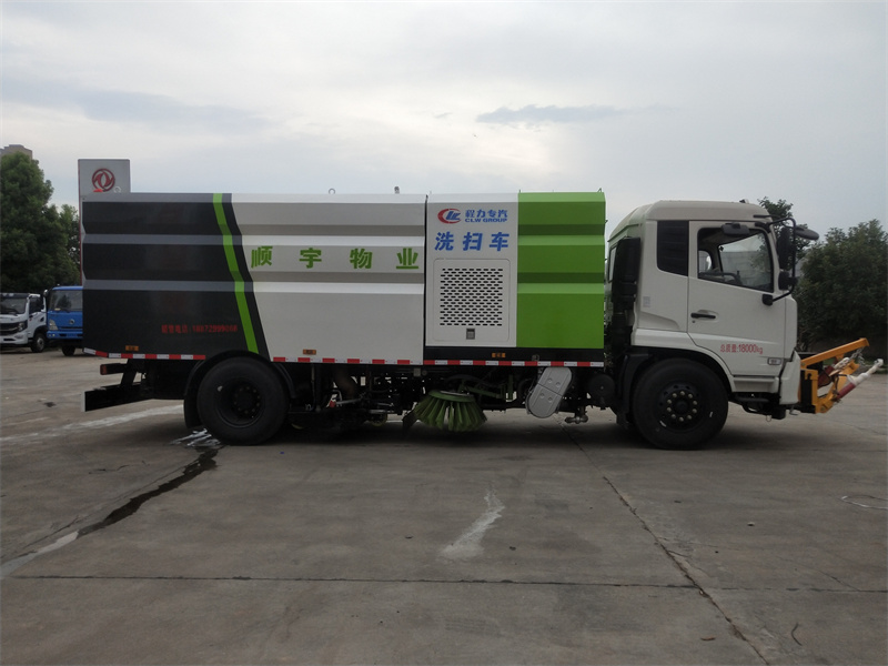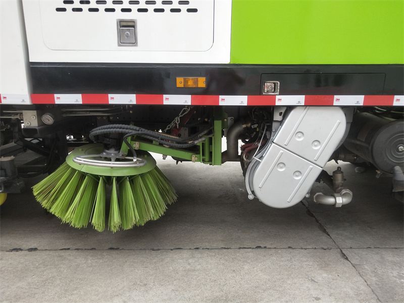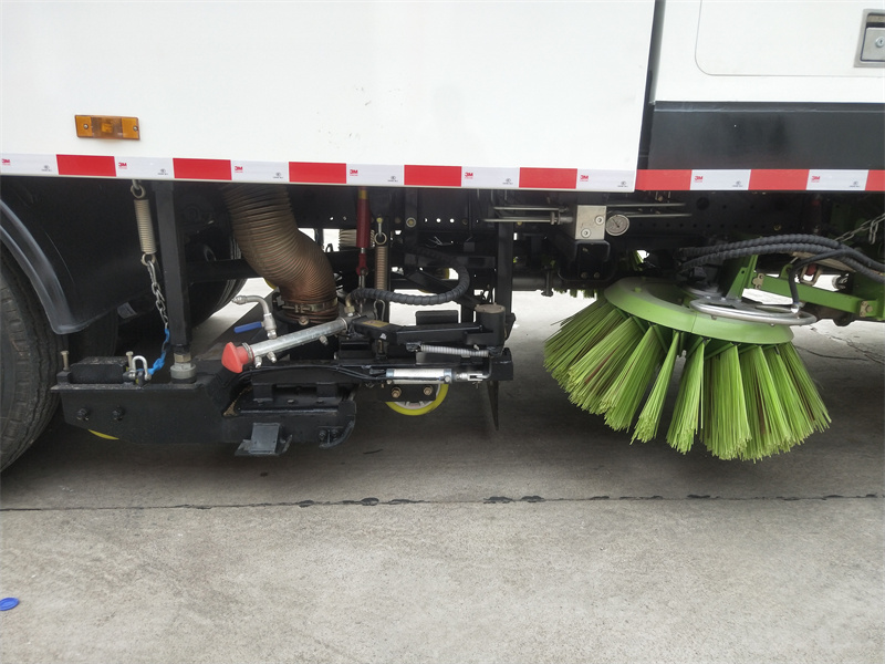 洗掃車(chē)采用中置兩刷盤(pán),中置寬吸盤(pán),配上具有防撞避障功能的V型高壓沖水架,組成一條大于3.5米的沖洗清掃帶。采用康明斯EQ6BT5.9-118型副發(fā)動(dòng)機(jī)現(xiàn)階段亦有采用電動(dòng)作為動(dòng)力的驅(qū)動(dòng)裝置橫置在車(chē)架中部,具有氣動(dòng)離合裝置控制的抽吸風(fēng)機(jī)布置在動(dòng)力倉(cāng)的左側(cè)。采用不銹鋼材料加工而成的水箱與垃圾箱均為采用方形瓦棱結(jié)構(gòu)。水箱分為兩部位,一部分為前置獨(dú)立水箱,裝配在動(dòng)力倉(cāng)的前部;另一部分為設(shè)置在垃圾箱前部的水箱,可隨垃圾箱與動(dòng)力倉(cāng)罩同時(shí)升降。具有舉升功能的垃圾箱內(nèi)裝配有高壓沖洗噴頭,使得卸料更為輕松、干凈徹底。能夠隨垃圾箱體舉升的動(dòng)力倉(cāng)罩可使動(dòng)力系統(tǒng)的維修保養(yǎng)極為便利。采用歐美地區(qū)的名優(yōu)配套部件,使得整車(chē)性能更為優(yōu)良,工作更為可靠。