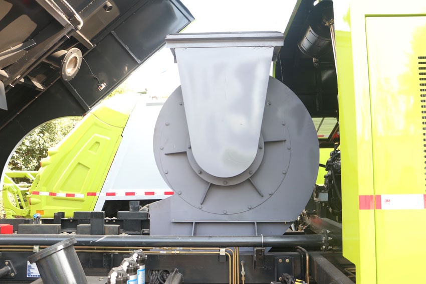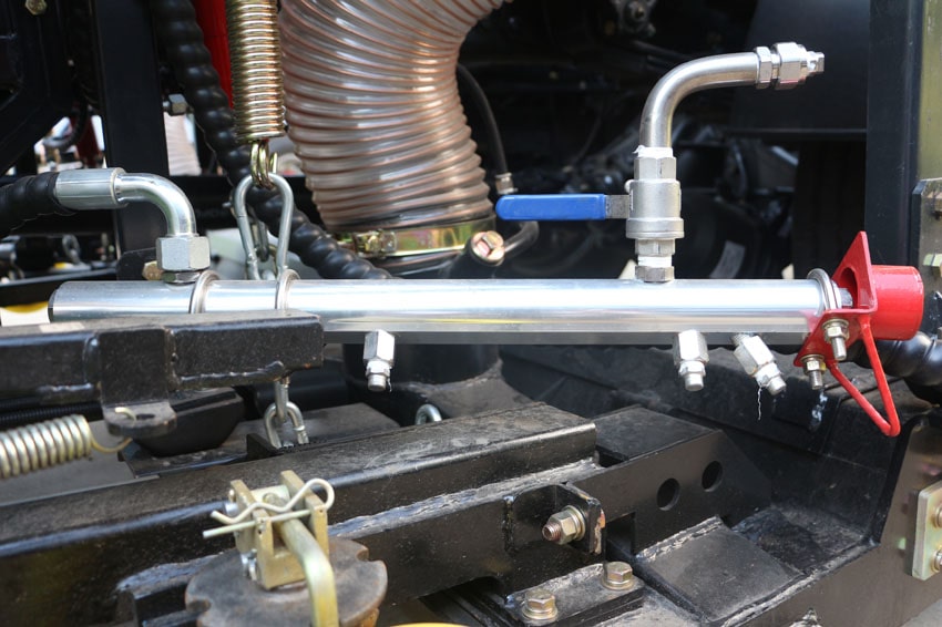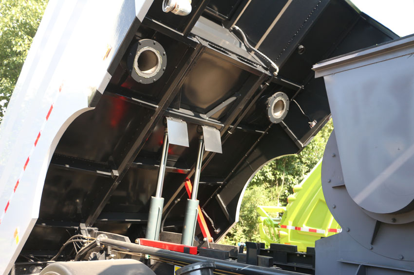 九、東風天錦洗掃車的污水箱內(nèi)采用大平面斜坡結(jié)構(gòu),最大卸料角度可達50度,更易于傾倒垃圾。污水箱內(nèi)設(shè)置了防溢滿報警裝置和高壓噴淋清洗裝置,防溢滿報警裝置可防止污水作業(yè)時從吸管溢出,造成二次污染;高壓噴淋清洗裝置在傾倒垃圾后可對污水箱進行自動清洗,大大減輕了操作人員的勞動強度。