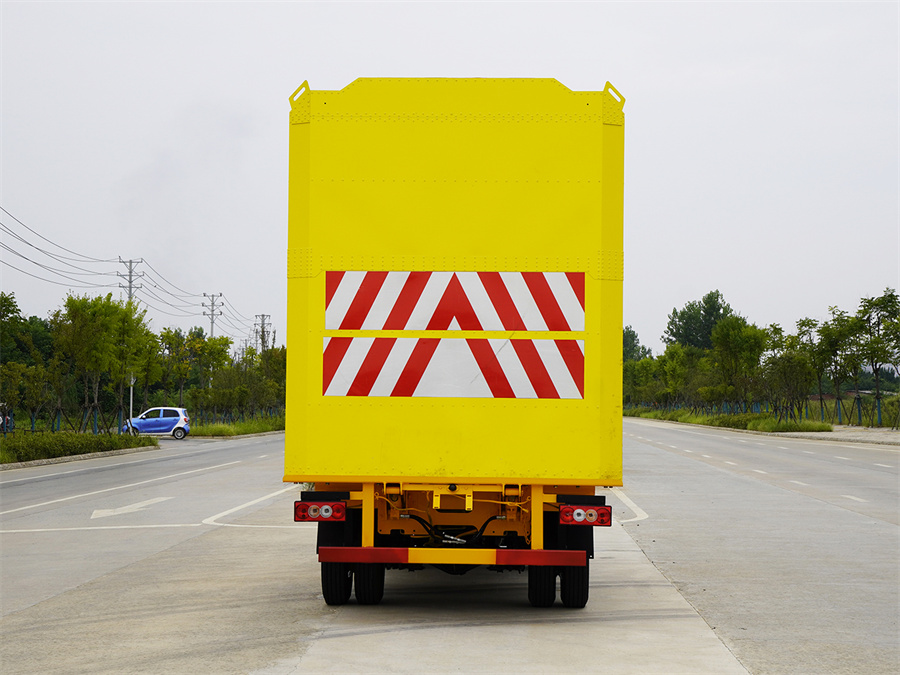 藍牌高速公路防撞車該車專用裝置為:車載式緩撞裝置,主要用于移動施工、臨時性封閉車道或交通事故處理及搶險現場,降低城市道路施工、高速公路養護等作業中的安全問題;ABS系統控制器型號為CM4XL-4S/4M,ABS系統控制器生產企業為廣州瑞立科密汽車電子股份有限公司;側、后部防護材料均為:Q235碳鋼,側防護采用螺栓連接,后防護采用焊接連接;后部防護截面尺寸(mm):100×50,后部防護離地高度(mm):440;隨底盤選裝新款前格柵及Logo,選裝鋁合金輪輞;僅采用7.00R16LT  8PR,6.50R16LT 10PR輪胎。