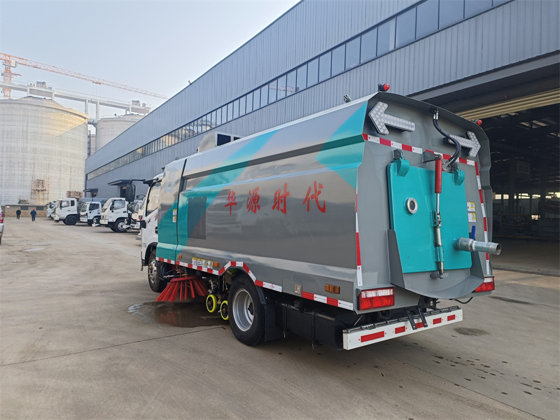 箱體材質為Q235碳鋼,箱體做電泳處理。水箱容積3方,塵箱容積3方。帶2個中置掃 盤,玉柴102馬力副發動機;三洋馬達;高壓水泵(前沖/側噴/中噴/沖洗水槍/垃圾箱 自潔裝置);控制器;控制箱;PLC一鍵控制;尾部LED箭頭燈;垃圾箱、水箱均帶防 溢低水位報警裝置;倒車及洗掃狀態室內監視器。20m高壓沖洗卷盤。車前加裝雪滾,
