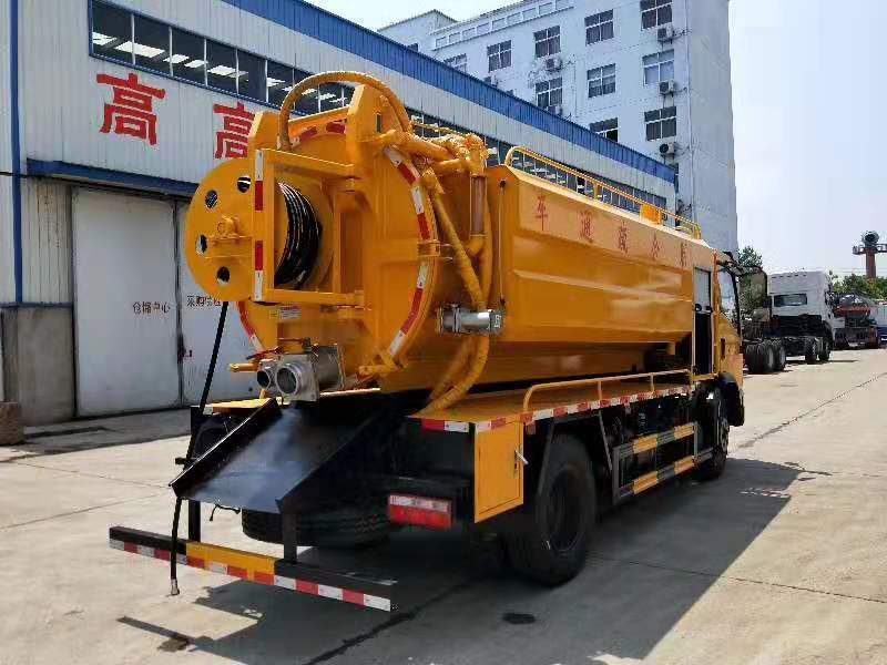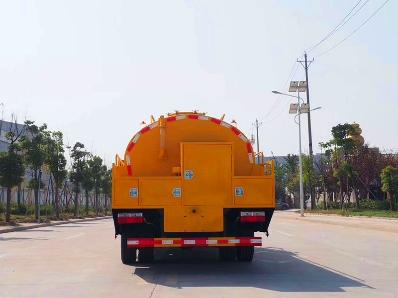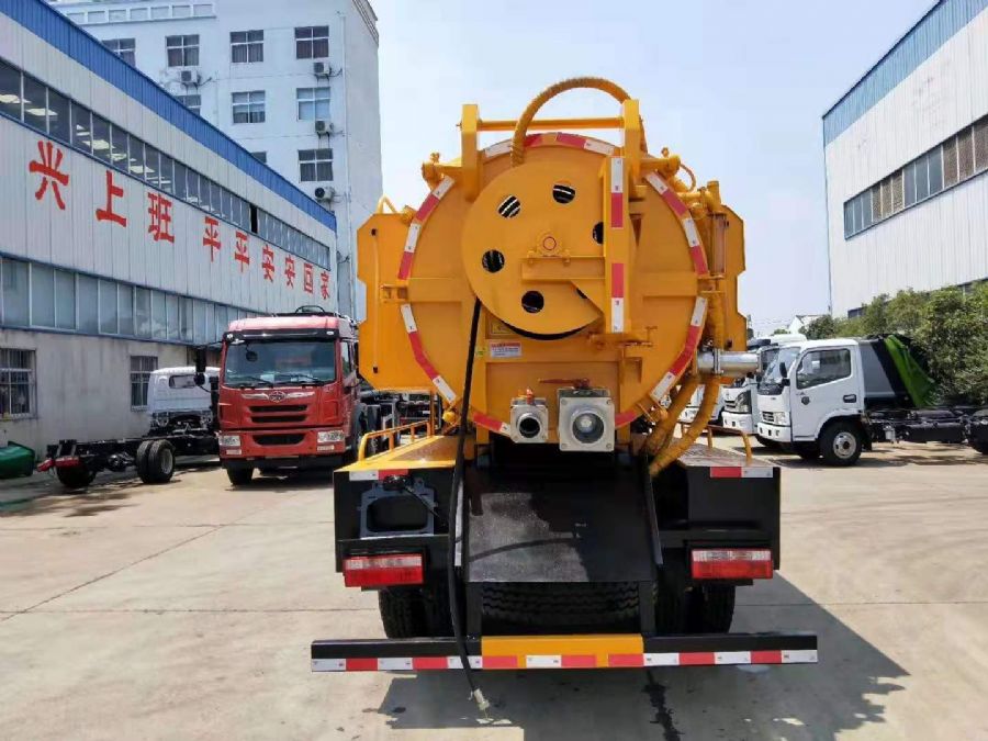 水罐3方,污罐7方,水罐采用4mm武鋼優質碳鋼制作,污罐采用6mm武鋼優質鋼板制作,配SK-9水循環泵/8噸油真空泵(根據客戶需求選裝),170流量高壓泵,24兆帕壓力,真空防溢閥,真空壓力表,視污窗,水罐邊掛接在罐體倆側(可拆卸),污罐體可液壓舉升自卸,后開蓋可液壓開啟,配60米高壓軟管,10個大小不同高壓噴頭,8米吸污管,尾部100mm吸污口,100mm排污口(可根據客戶需求加大),帶免征,環保公告。