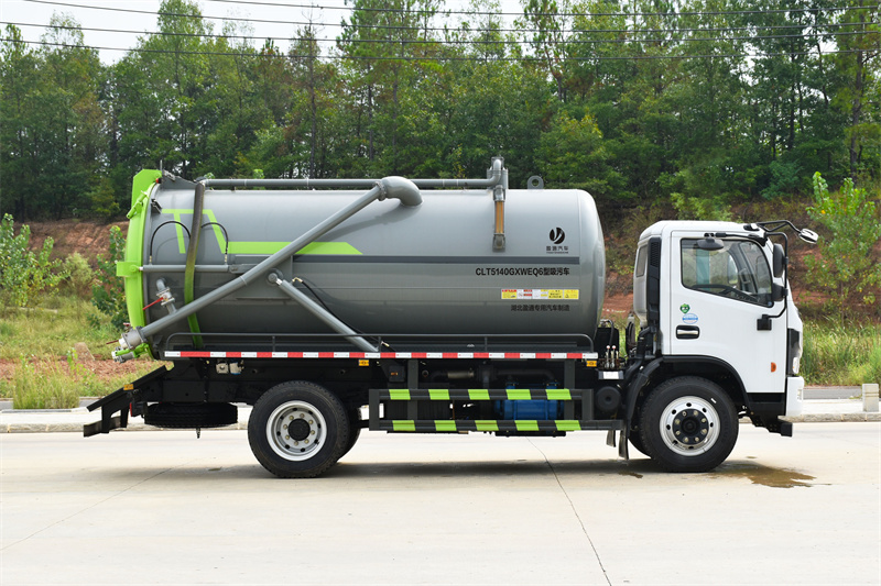 上裝配置:罐體采用優(yōu)質(zhì)碳鋼板制作,SK-12型水循環(huán)泵,帶四通閥,防溢報警系統(tǒng),配一根16米吸污管。罐體后蓋可液壓打開,罐體后吸污口為DN100球閥,一個DN100排污口,罐體可液壓舉升。
