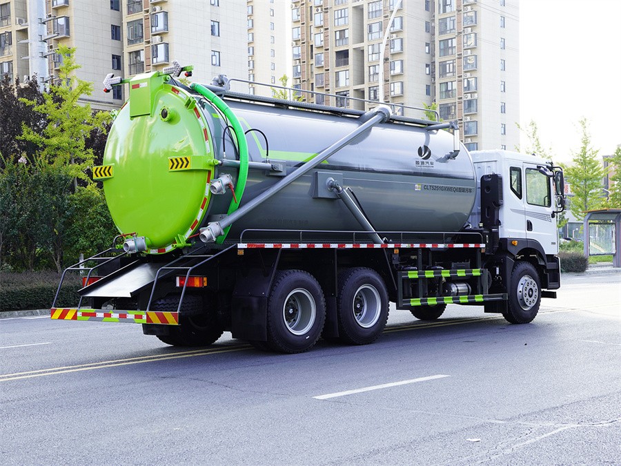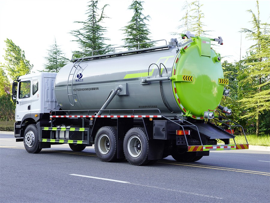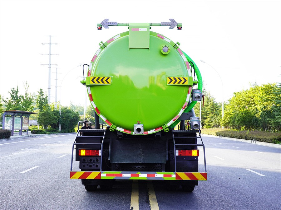該車用于吸除水坑、下水道里污濁物;主要裝置有罐體及吸污裝置.該車具有舉升功能.罐體總容量:15.62立方米;罐體有效容積:14.88立方米;罐體外形尺寸(總長×直徑)(mm):6150×2000.側、后防護材料均為:Q235碳鋼,連接方式均為:螺栓連接,后部防護截面尺寸(mm):150×50,后部防護離地高度(mm):490.ABS型號/生產廠家:3631010-C2000/東科克諾爾商用車制動系統(十堰)有限公司,J ABS/焦作博瑞克控制技術有限公司.僅采用底盤4350+1350軸距(mm)改裝.選裝側面樣式和后部出污口樣式.隨底盤選裝駕駛室.選裝后部樣式.