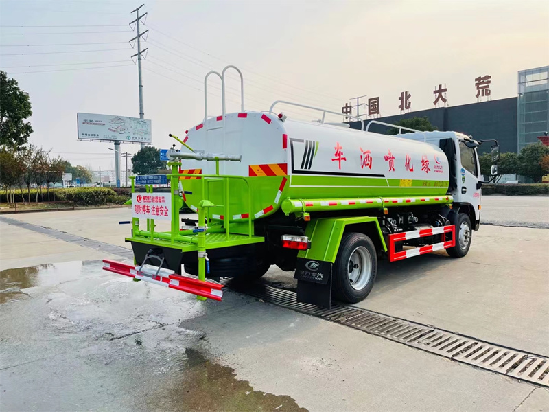 整車帶一個(gè)專用灑水泵(垂直最大吸程6米),灑水寬度14米,射程28米。多功能灑水車配備2個(gè)前沖(噴)(能將路面泥巴、塵土、垃圾沖干凈);2個(gè)后灑(能均勻地將水灑在路面,一次灑水寬度14米)、2個(gè)側(cè)噴(花灑)(能均勻地將路旁綠化帶澆灌)、帶1個(gè)后工作平臺(tái),平臺(tái)上安裝1個(gè)綠化灑水高炮(灑水炮可全方位旋轉(zhuǎn),可連續(xù)調(diào)成直沖狀、大雨、小雨、毛毛雨,霧狀可調(diào)節(jié)沖洗高大樹木),引水時(shí)間<5min,流量90m3/h。帶1個(gè)消防接頭,帶1個(gè)自流閥,1個(gè)過濾裝置、人性化爬梯及側(cè)防護(hù)欄,安裝灑水音樂喇叭。
