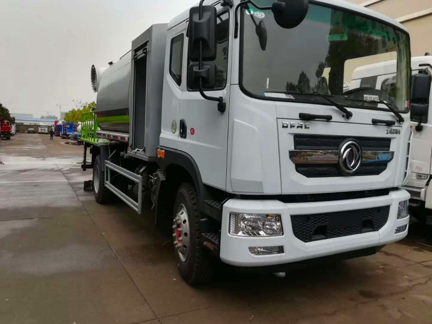 上裝配置:罐體容積為 15-18 立方多功能抑塵灑水車,選配風送式霧炮機組射程50米、60米、80米、100米、120米,罐體鋼板為4mm碳鋼Q235材質,罐內隔板具有防波作用,以減輕汽車行駛時罐體液體沖擊,罐體及整車外形尺寸按照公告。帶大功率專用灑水泵,泵可自吸自排,整車前沖、后灑、側噴、帶65消防接口,后平臺配CLW-50、CLW-60、CLW-80、CLW-100、CLW-120型風送式霧炮機組;罐體前封頭配大功率柴油發電機組;遠程遙控系統控制;霧炮機自動旋轉角度0-360°。后平臺帶綠化灑水炮,灑水炮可全方位旋轉,可連續調成直沖狀、大雨、小雨、毛毛雨;前封頭帶水位計,后平臺主管路帶1寸澆花接口,后爬梯。帶兩根輸水管及陰陽端。罐體顏色:銀/灰/綠,罐體兩側噴“多功能抑塵車”字樣,貼反光標示。