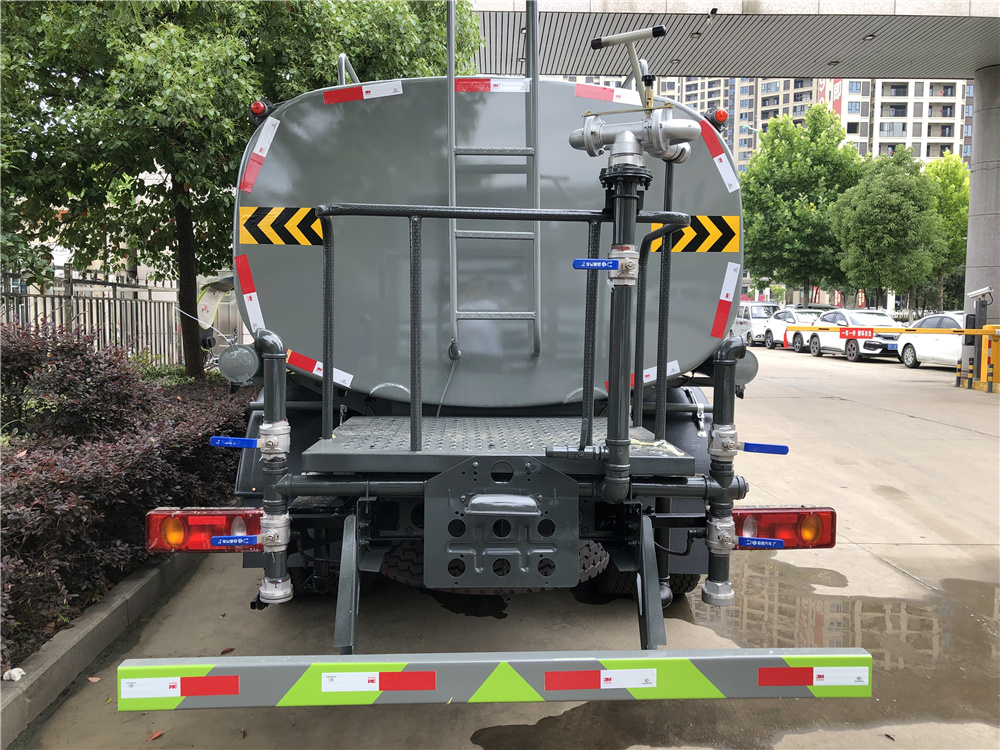 東風華神T1灑水車專用功能配置:罐體實際容積約為9.35立方米,采用武鋼優質碳鋼板卷壓成型。配備專用灑水泵,自吸自排,前噴后灑、側噴、后工作平臺及灑水高壓炮。灑水泵自吸高度為6米左右,整車灑水寬度14米左右,后工作平臺水炮可調成:直沖狀、大雨、中雨、小雨、毛毛雨,有效射程≥28米,整車帶接頭、水位計,自流閥。后工作平臺主管道有一個一寸的澆花接口,附送2根3米水管,1個爬梯,兩側及后保險杠。
