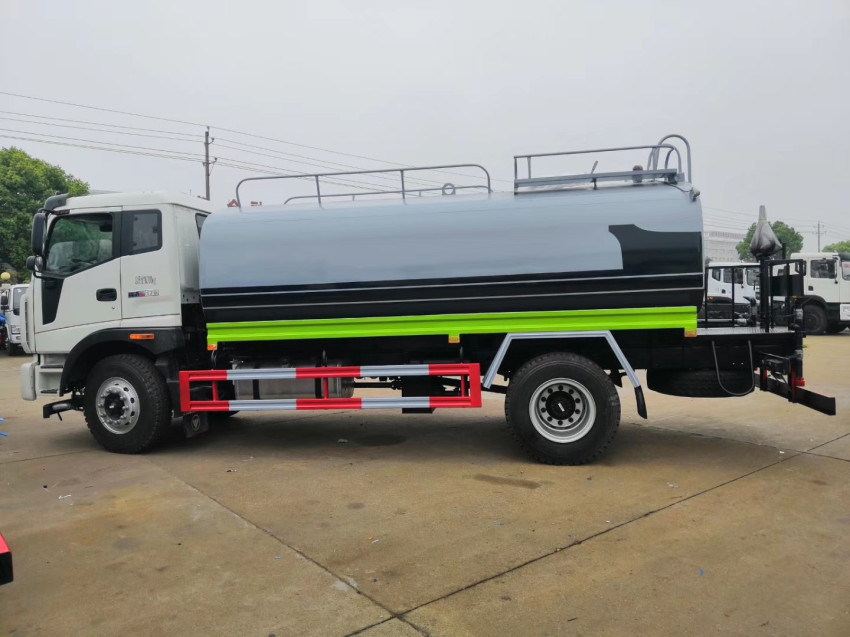 福田瑞沃灑水車15噸灑水車改裝配置:罐體用4MM碳鋼板制作,罐內(nèi)隔板具有防波作用,以減低汽車行駛時(shí)罐體液體的沖擊。整車帶一個(gè)專用灑水泵(垂直最大吸程6米),灑水寬度 14米,射程28米。多功能灑水車配備2個(gè)前沖(噴)(能將路面泥巴、塵土、垃圾沖干凈);2個(gè)后灑(能均勻地將水灑在路面,一次灑水寬度14米)、2個(gè)側(cè)噴 (花灑)(能均勻地將路旁綠化帶澆灌)、帶1個(gè)后工作平臺,平臺上安裝1個(gè)綠化灑水高炮(灑水炮可全方位旋轉(zhuǎn),可連續(xù)調(diào)成直沖狀、大雨、小雨、毛毛 雨,霧狀可調(diào)節(jié)沖洗高大樹木),引水時(shí)間<5min,流量90m3/h。帶1個(gè)消防接頭,帶1個(gè)自流閥,1個(gè)過濾裝置、人性化爬梯及側(cè)防護(hù)欄,安裝灑水音樂喇 叭。