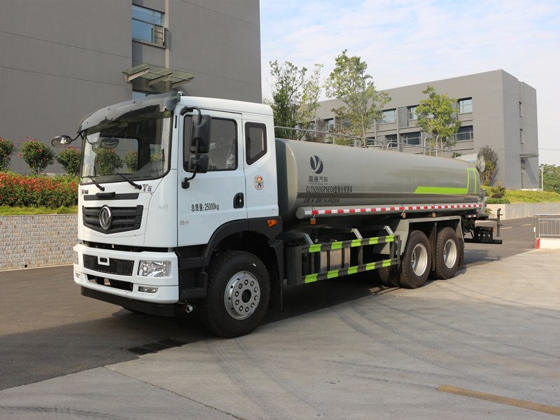 用功能配置:罐體實際容積約為22立方米(罐體有效參數17.6立方米、額定載質量13405kg、)采用武鋼優質碳鋼板卷壓成型。配備專用灑水泵,自吸自排,前噴后灑、側噴、后工作平臺及灑水高壓炮。灑水泵自吸高度為6米左右,整車灑水寬度14米左右,后工作平臺水炮可調成:直沖狀、大雨、中雨、小雨、毛毛雨,有效射程≥28米,整車帶接頭、水位計,自流閥。后工作平臺主管路帶1寸澆花接口,附送2根3米水管,1個爬梯,兩側及后保險杠。