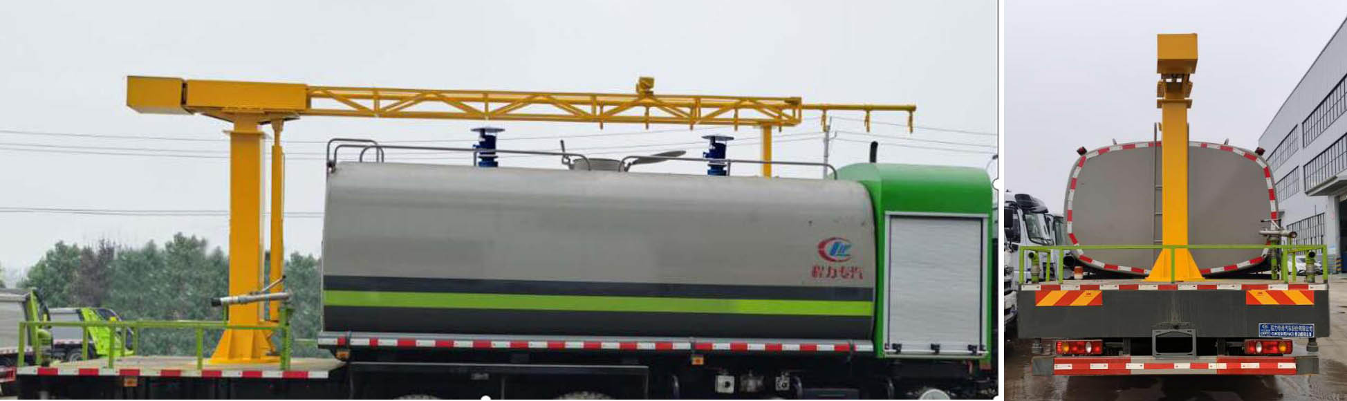 該車專用裝置為抑塵霧炮,主要用于城市抑塵;整車長/軸距的對應關系為(mm):10180/4400+1350,11280/5500+1350;防護材料:左右側面采用焊接連接,材質為Q235A碳鋼,后下部防護采用螺栓連接,后部防護斷面尺寸(mm):150×50,后部防護離地高度(mm):480.ABS控制器型號/生產企業:44600XXXX0/威伯科汽車控制系統(中國)有限公司,3550X-1010/東科克諾爾商用車制動系統(十堰)有限公司,CM4XL-4S/4M/廣州瑞立科密汽車電子股份有限公司;選裝后部噴桿抑塵裝置.