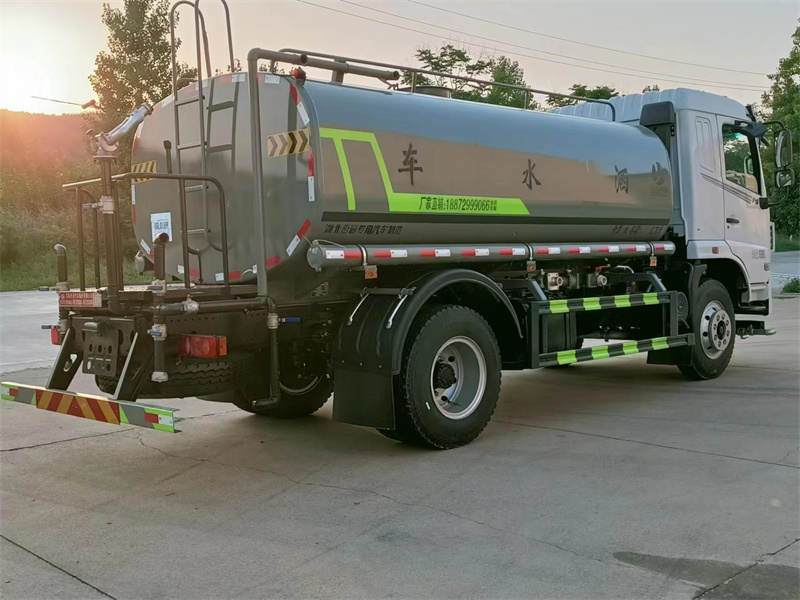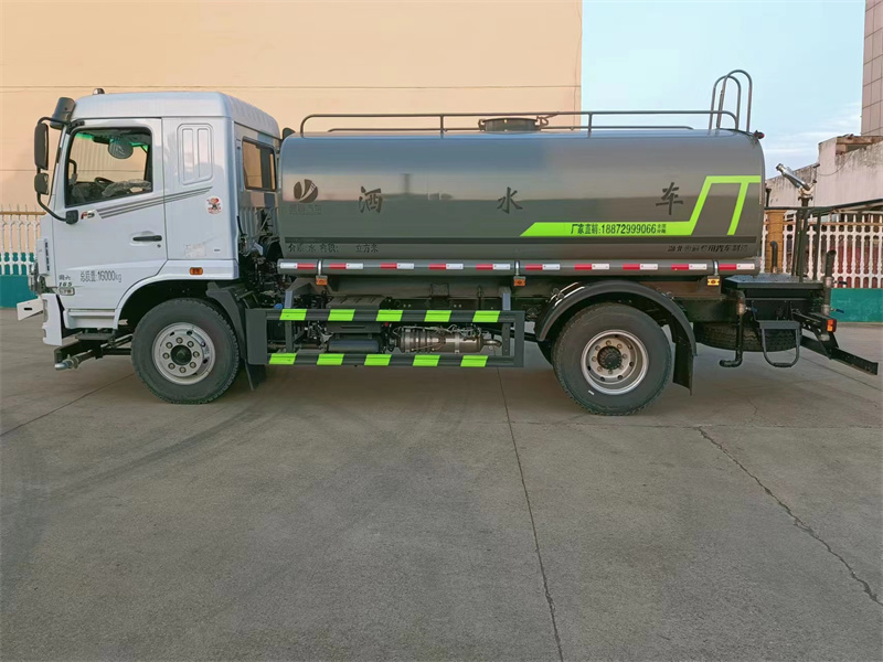 東風華神12噸灑水車產品標配前噴(鴨嘴)、后沖、后灑、側噴、后置式工作 平臺,平臺上配置綠化水炮(可 360°旋轉,既可以調成柱狀,也可 以調成霧狀,更可以調成直沖狀、大雨、中雨、小雨、毛毛雨),配 備優質大功率專用灑水泵(可自吸自排,可從河里或池塘抽水到罐體), 取力器,雜物過濾網,消防接口,自流球閥系統、取力器、球閥、濾網 均為國家標準產品,主管道加粗,法蘭墊、法蘭盤加厚,大通徑球閥。 整體具備性能優良安全可靠、效率高、流量大、維修方便等特點。