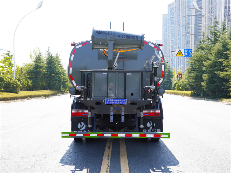 產(chǎn)品標配前噴 (鴨嘴) 、后沖、后灑、側噴、后置式工作 平臺,平臺上配置綠化水炮 (可 360°旋轉,既可以調成柱狀,也可 以調成霧狀,更可以調成直沖狀、大雨、中雨、小雨、毛毛雨) ,配 備優(yōu)質大功率專用灑水泵(可自吸自排,可從河里或池塘抽水到罐體), 取力器,雜物過濾網(wǎng),消防接口, 自流球閥系統(tǒng)、取力器、球閥、濾網(wǎng) 均為國家標準產(chǎn)品,主管道加粗,法蘭墊、法蘭盤加厚,大通徑球閥。 整體具備性能優(yōu)良安全可靠、效率高、流量大、維修方便等特點